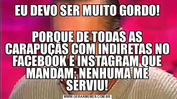 EU DEVO SER MUITO GORDO! PORQUE DE TODAS AS CARAPUÇAS COM INDIRETAS NO FACEBOOK E INSTAGRAM QUE MANDAM; NENHUMA ME SERVIU!