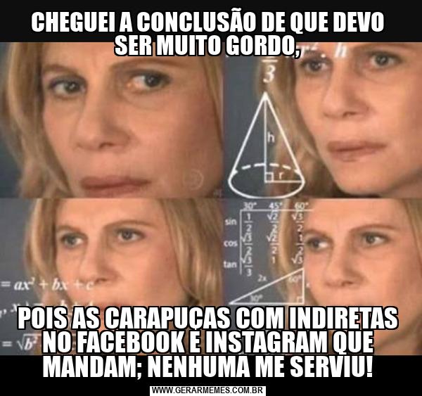 CHEGUEI A CONCLUSÃO DE QUE DEVO SER MUITO GORDO, POIS AS CARAPUÇAS COM INDIRETAS NO FACEBOOK E INSTAGRAM QUE MANDAM; NENHUMA ME SERVIU!