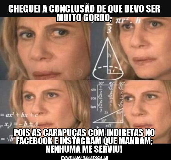 CHEGUEI A CONCLUSÃO DE QUE DEVO SER MUITO GORDO, POIS AS CARAPUÇAS COM INDIRETAS NO FACEBOOK E INSTAGRAM QUE MANDAM; NENHUMA ME SERVIU!