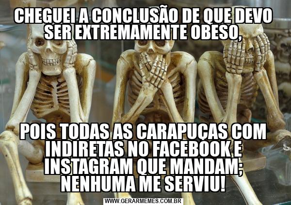 CHEGUEI A CONCLUSÃO DE QUE DEVO SER EXTREMAMENTE OBESO, POIS TODAS AS CARAPUÇAS COM INDIRETAS NO FACEBOOK E INSTAGRAM QUE MANDAM; NENHUMA ME SERVIU!
