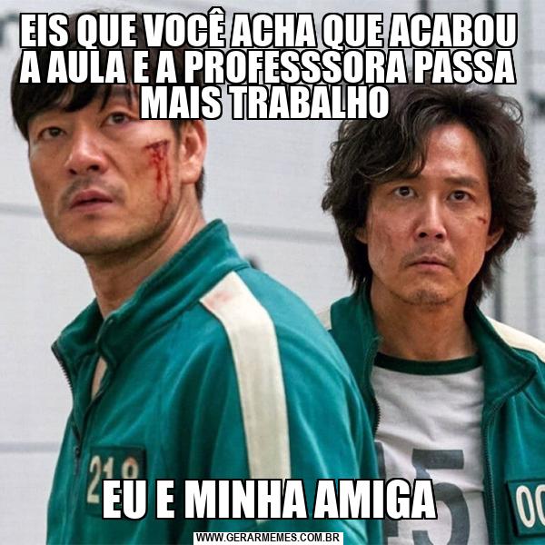 EIS QUE VOCÊ ACHA QUE ACABOU A AULA E A PROFESSSORA PASSA MAIS TRABALHO EU E MINHA AMIGA