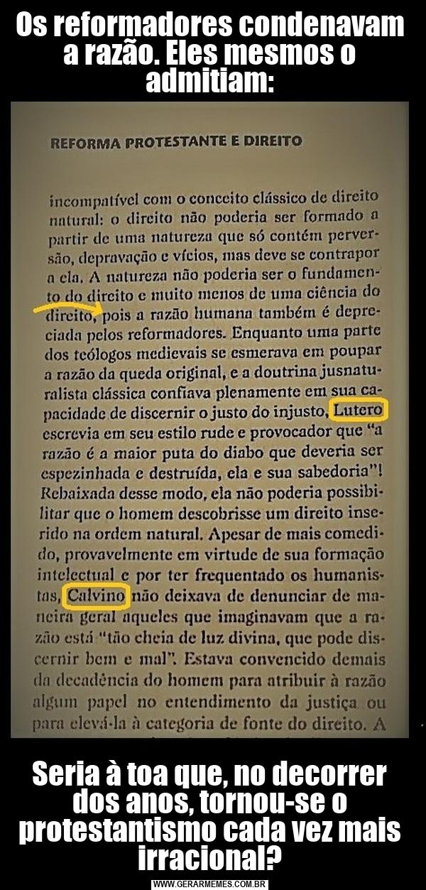 Os reformadores condenavam a razão. Eles mesmos o admitiam: Seria à toa que, no decorrer dos anos, tornou-se o protestantismo cada vez mais irracional?