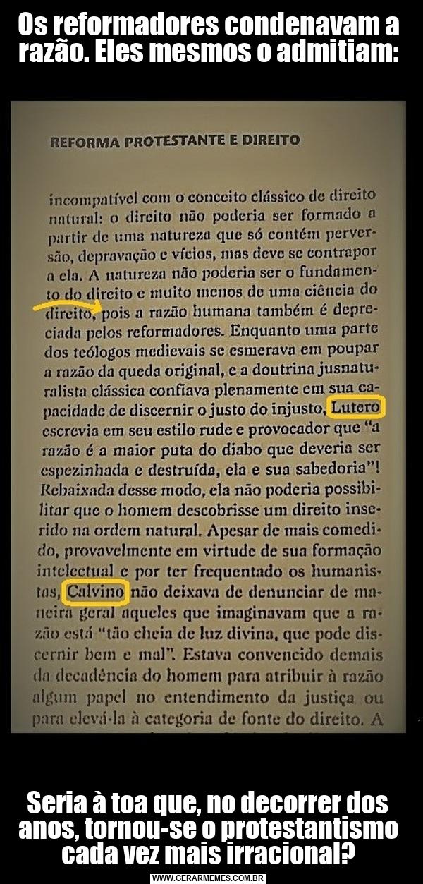 Os reformadores condenavam a razão. Eles mesmos o admitiam: Seria à toa que, no decorrer dos anos, tornou-se o protestantismo cada vez mais irracional?