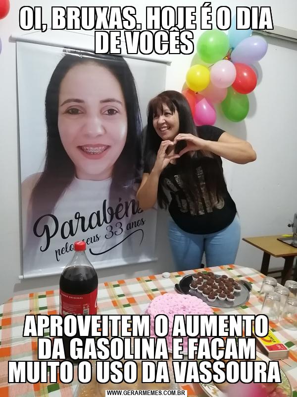 OI, BRUXAS. HOJE É O DIA DE VOCÊS APROVEITEM O AUMENTO DA GASOLINA E FAÇAM MUITO O USO DA VASSOURA