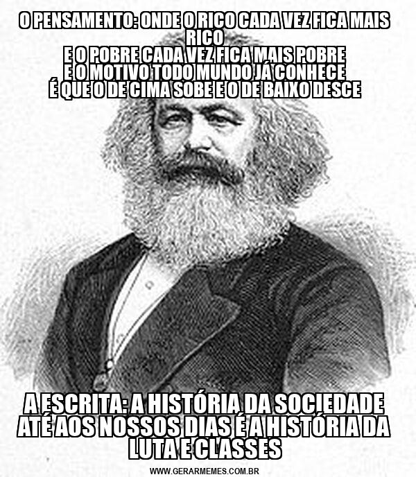 O PENSAMENTO: ONDE O RICO CADA VEZ FICA MAIS RICO E O POBRE CADA VEZ FICA MAIS POBRE E O MOTIVO TODO MUNDO JÁ CONHECE É QUE O DE CIMA SOBE E O DE BAIXO DESCE A ESCRITA: A HISTÓRIA DA SOCIEDADE ATÉ AOS NOSSOS DIAS É A HISTÓRIA DA LUTA E CLASSES