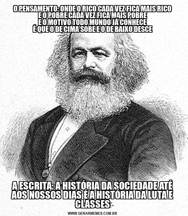 O PENSAMENTO: ONDE O RICO CADA VEZ FICA MAIS RICO E O POBRE CADA VEZ FICA MAIS POBRE E O MOTIVO TODO MUNDO JÁ CONHECE É QUE O DE CIMA SOBE E O DE BAIXO DESCE A ESCRITA: A HISTÓRIA DA SOCIEDADE ATÉ AOS NOSSOS DIAS É A HISTÓRIA DA LUTA E CLASSES