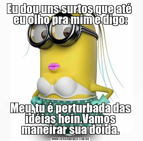 Eu dou uns surtos que até eu olho pra mim e digo: Meu, tu é perturbada das idéias hein.Vamos maneirar sua doida.