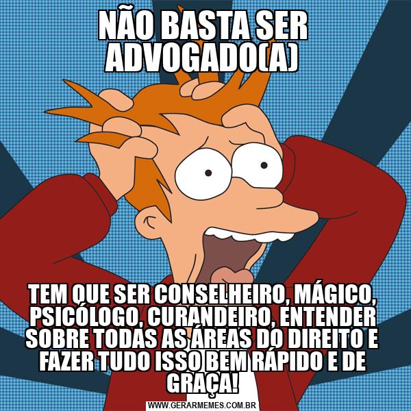 NÃO BASTA SER ADVOGADO(A) TEM QUE SER CONSELHEIRO, MÁGICO, PSICÓLOGO, CURANDEIRO, ENTENDER SOBRE TODAS AS ÁREAS DO DIREITO E FAZER TUDO ISSO BEM RÁPIDO E DE GRAÇA!