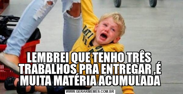 LEMBREI QUE TENHO TRÊS TRABALHOS PRA ENTREGAR ,É MUITA MATÉRIA ACUMULADA