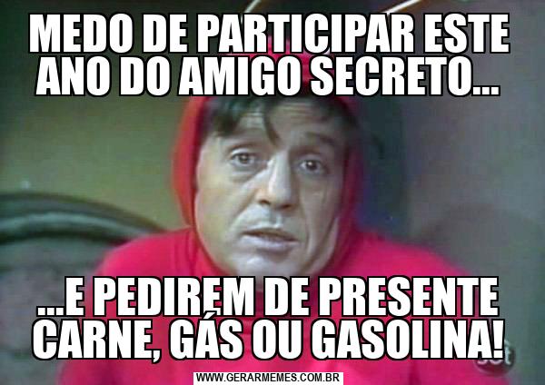 MEDO DE PARTICIPAR ESTE ANO DO AMIGO SECRETO... ...E PEDIREM DE PRESENTE CARNE, GÁS OU GASOLINA!