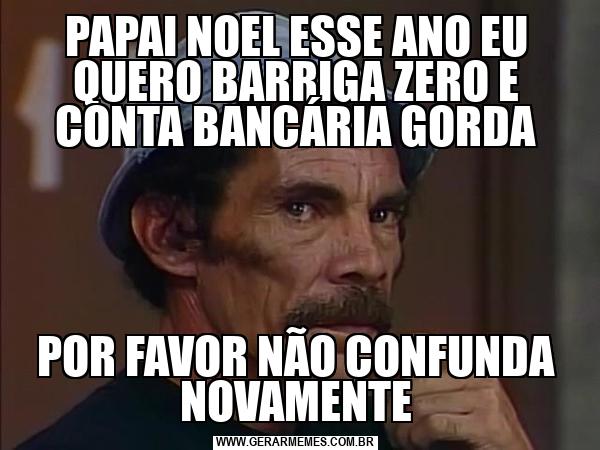 PAPAI NOEL ESSE ANO EU QUERO BARRIGA ZERO E CONTA BANCÁRIA GORDA POR FAVOR NÃO CONFUNDA NOVAMENTE