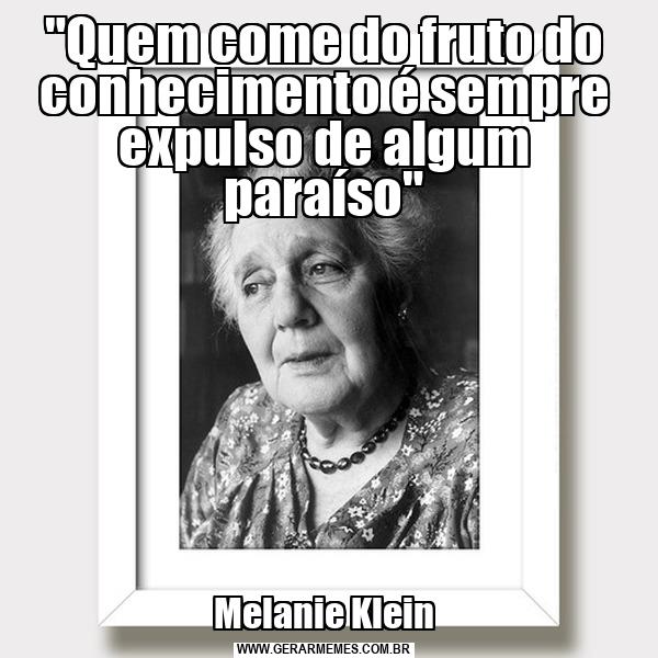 "Quem come do fruto do conhecimento é sempre expulso de algum paraíso" Melanie Klein
