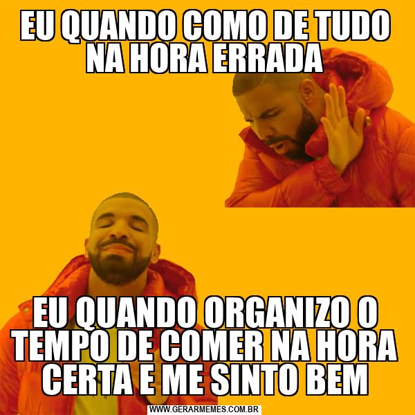 EU QUANDO COMO DE TUDO NA HORA ERRADA EU QUANDO ORGANIZO O TEMPO DE COMER NA HORA CERTA E ME SINTO BEM