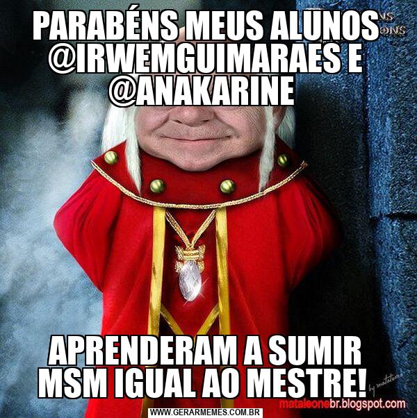 PARABÉNS MEUS ALUNOS @IRWEMGUIMARAES E @ANAKARINE APRENDERAM A SUMIR MSM IGUAL AO MESTRE!