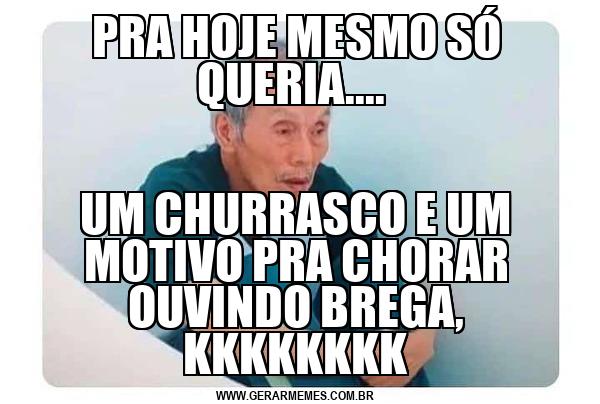 PRA HOJE MESMO SÓ QUERIA.... UM CHURRASCO E UM MOTIVO PRA CHORAR OUVINDO BREGA, KKKKKKKK