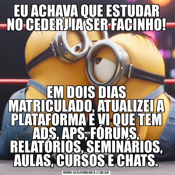 EU ACHAVA QUE ESTUDAR NO CEDERJ IA SER FACINHO! EM DOIS DIAS MATRICULADO, ATUALIZEI A PLATAFORMA E VI QUE TEM ADS, APS, FÓRUNS, RELATÓRIOS, SEMINÁRIOS, AULAS, CURSOS E CHATS.