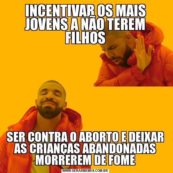 INCENTIVAR OS MAIS JOVENS A NÃO TEREM FILHOS SER CONTRA O ABORTO E DEIXAR AS CRIANÇAS ABANDONADAS MORREREM DE FOME