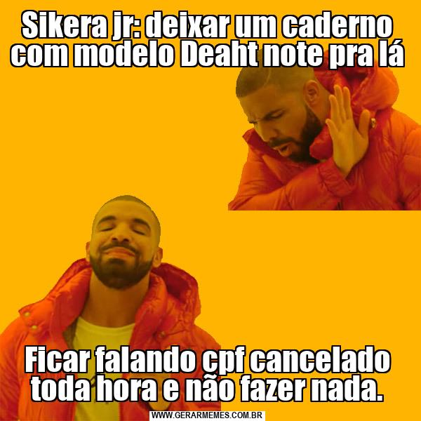 Sikera jr: deixar um caderno com modelo Deaht note pra lá Ficar falando cpf cancelado toda hora e não fazer nada.