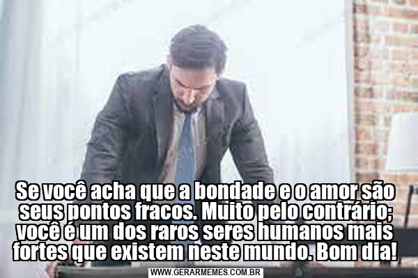 Se você acha que a bondade e o amor são seus pontos fracos. Muito pelo contrário; você é um dos raros seres humanos mais fortes que existem neste mundo. Bom dia!
