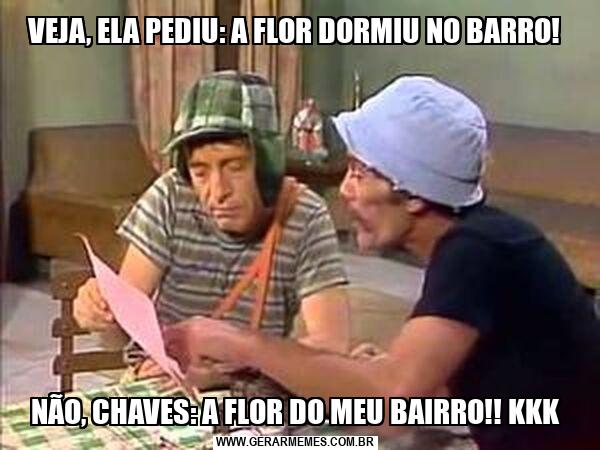 VEJA, ELA PEDIU: A FLOR DORMIU NO BARRO! NÃO, CHAVES: A FLOR DO MEU BAIRRO!! KKK
