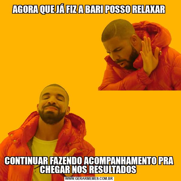 AGORA QUE JÁ FIZ A BARI POSSO RELAXAR CONTINUAR FAZENDO ACOMPANHAMENTO PRA CHEGAR NOS RESULTADOS