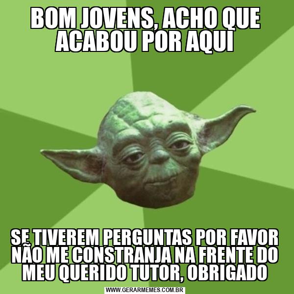 BOM JOVENS, ACHO QUE ACABOU POR AQUI SE TIVEREM PERGUNTAS POR FAVOR NÃO ME CONSTRANJA NA FRENTE DO MEU QUERIDO TUTOR, OBRIGADO