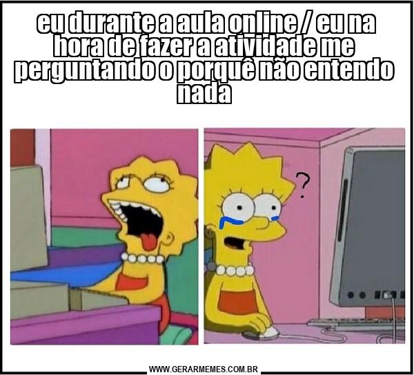 eu durante a aula online / eu na hora de fazer a atividade me perguntando o porquê não entendo nada