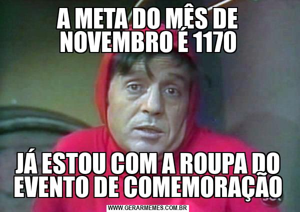 A META DO MÊS DE NOVEMBRO É 1170 JÁ ESTOU COM A ROUPA DO EVENTO DE COMEMORAÇÃO