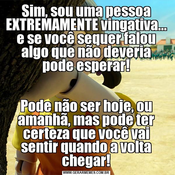 Sim, sou uma pessoa EXTREMAMENTE vingativa... e se você sequer falou algo que não deveria pode esperar! Pode não ser hoje, ou amanhã, mas pode ter certeza que você vai sentir quando a volta chegar!