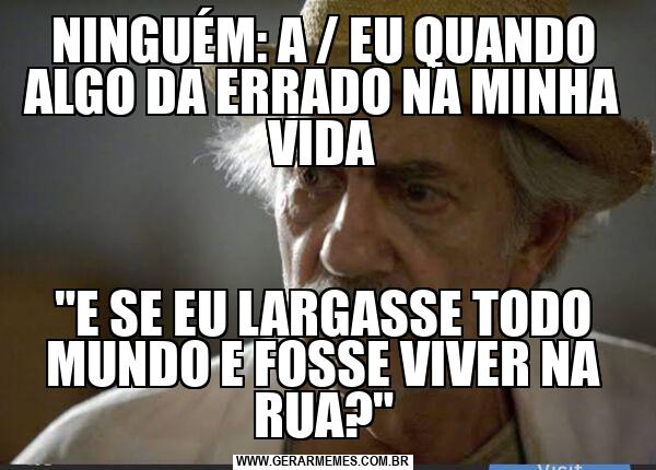 NINGUÉM: A / EU QUANDO ALGO DA ERRADO NA MINHA VIDA "E SE EU LARGASSE TODO MUNDO E FOSSE VIVER NA RUA?"