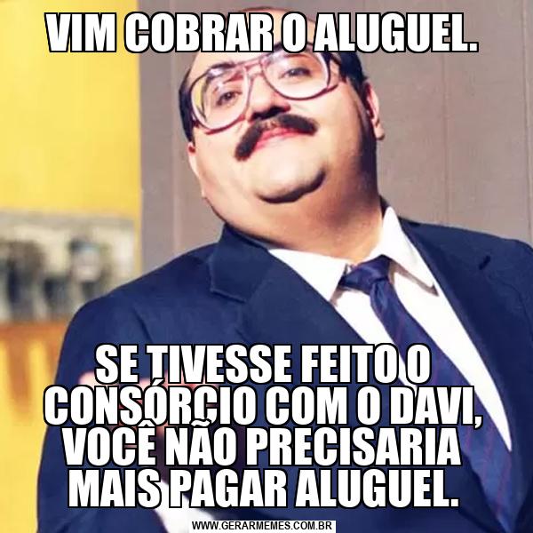 VIM COBRAR O ALUGUEL. SE TIVESSE FEITO O CONSÓRCIO COM O DAVI, VOCÊ NÃO PRECISARIA MAIS PAGAR ALUGUEL.