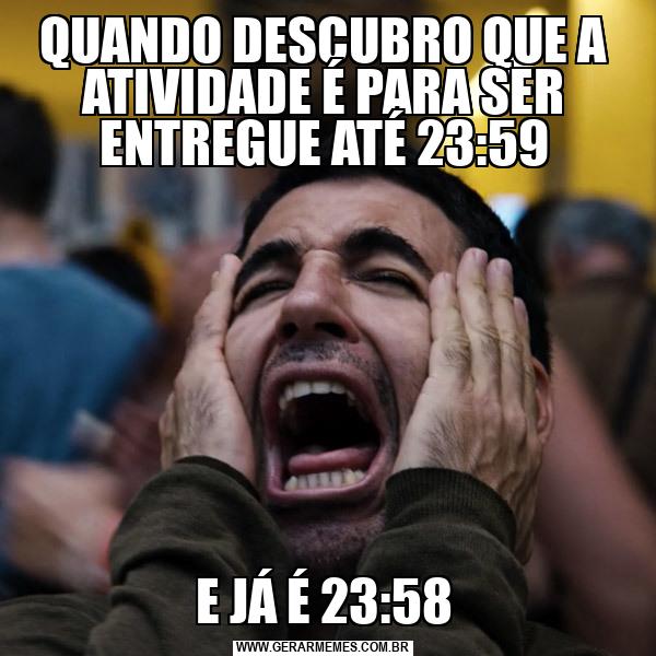 QUANDO DESCUBRO QUE A ATIVIDADE É PARA SER ENTREGUE ATÉ 23:59 E JÁ É 23:58
