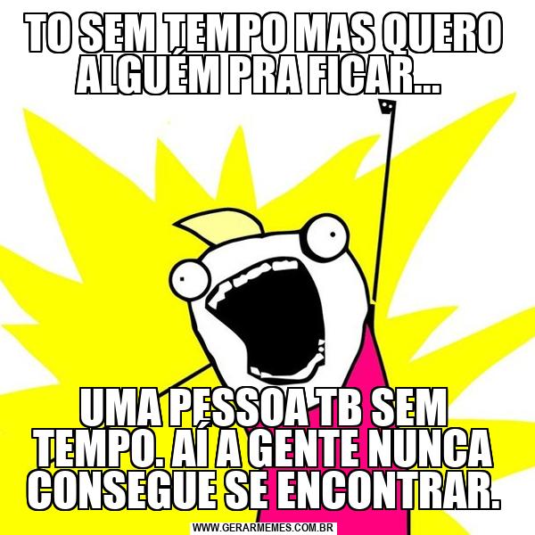 TO SEM TEMPO MAS QUERO ALGUÉM PRA FICAR... UMA PESSOA TB SEM TEMPO. AÍ A GENTE NUNCA CONSEGUE SE ENCONTRAR.