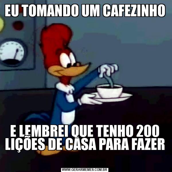 EU TOMANDO UM CAFEZINHO E LEMBREI QUE TENHO 200 LIÇÕES DE CASA PARA FAZER