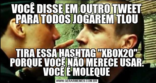 VOCÊ DISSE EM OUTRO TWEET PARA TODOS JOGAREM TLOU TIRA ESSA HASHTAG "XBOX20" PORQUE VOCÊ NÃO MERECE USAR. VOCÊ É MOLEQUE