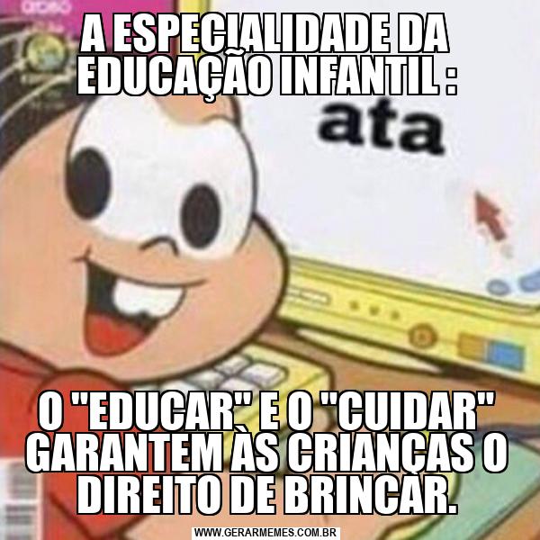 A ESPECIALIDADE DA EDUCAÇÃO INFANTIL : O "EDUCAR" E O "CUIDAR" GARANTEM ÀS CRIANÇAS O DIREITO DE BRINCAR.