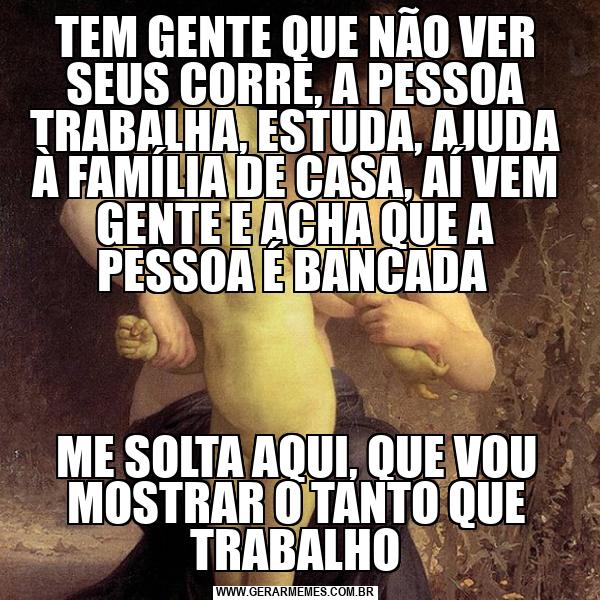 TEM GENTE QUE NÃO VER SEUS CORRE, A PESSOA TRABALHA, ESTUDA, AJUDA À FAMÍLIA DE CASA, AÍ VEM GENTE E ACHA QUE A PESSOA É BANCADA ME SOLTA AQUI, QUE VOU MOSTRAR O TANTO QUE TRABALHO