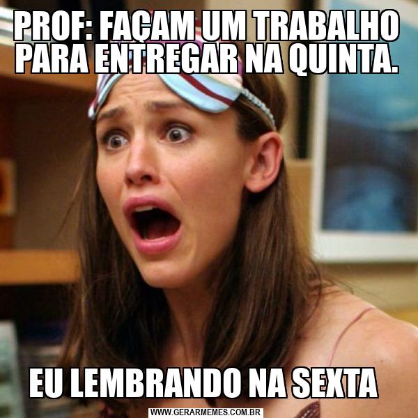 PROF: FAÇAM UM TRABALHO PARA ENTREGAR NA QUINTA. EU LEMBRANDO NA SEXTA