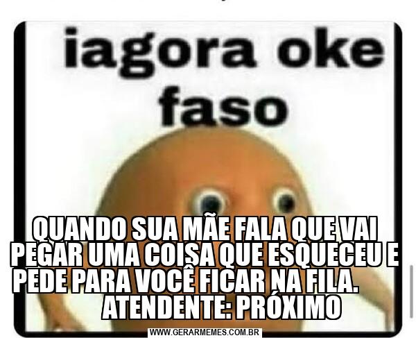 QUANDO SUA MÃE FALA QUE VAI PEGAR UMA COISA QUE ESQUECEU E PEDE PARA VOCÊ FICAR NA FILA. ATENDENTE: PRÓXIMO