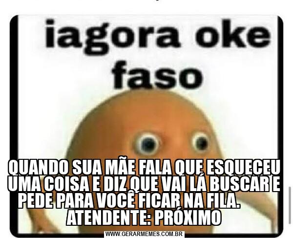 QUANDO SUA MÃE FALA QUE ESQUECEU UMA COISA E DIZ QUE VAI LÁ BUSCAR E PEDE PARA VOCÊ FICAR NA FILA. ATENDENTE: PRÓXIMO