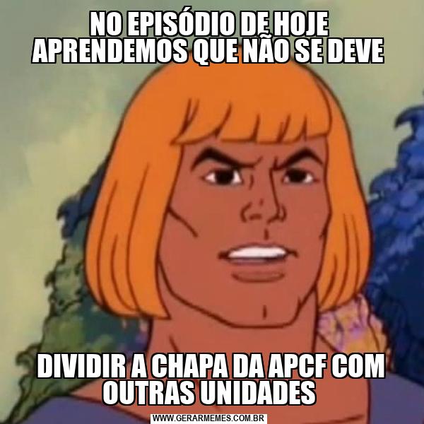 NO EPISÓDIO DE HOJE APRENDEMOS QUE NÃO SE DEVE DIVIDIR A CHAPA DA APCF COM OUTRAS UNIDADES