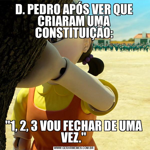 D. PEDRO APÓS VER QUE CRIARAM UMA CONSTITUIÇÃO: '1, 2, 3 VOU FECHAR DE UMA VEZ.'