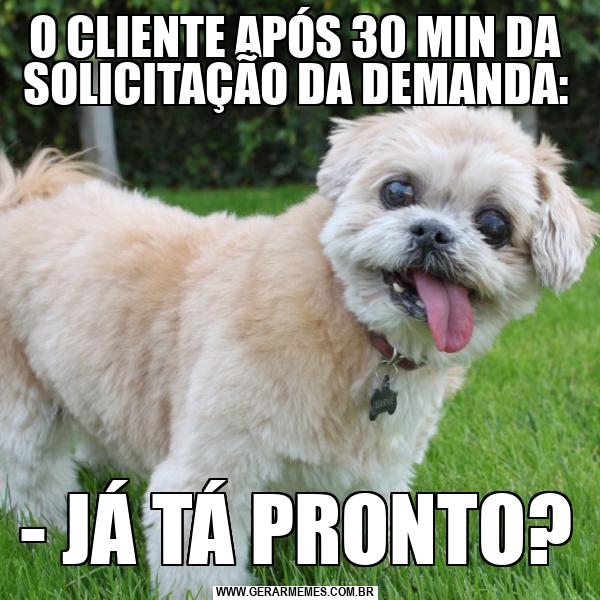 O CLIENTE APÓS 30 MIN DA SOLICITAÇÃO DA DEMANDA: - JÁ TÁ PRONTO?