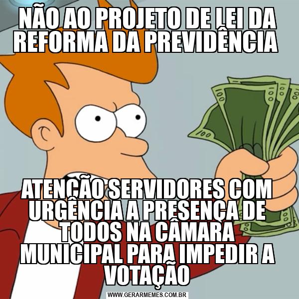 NÃO AO PROJETO DE LEI DA REFORMA DA PREVIDÊNCIA ATENÇÃO SERVIDORES COM URGÊNCIA A PRESENÇA DE TODOS NA CÂMARA MUNICIPAL PARA IMPEDIR A VOTAÇÃO