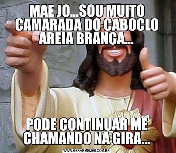 MAE JO...SOU MUITO CAMARADA DO CABOCLO AREIA BRANCA... PODE CONTINUAR ME CHAMANDO NA GIRA...
