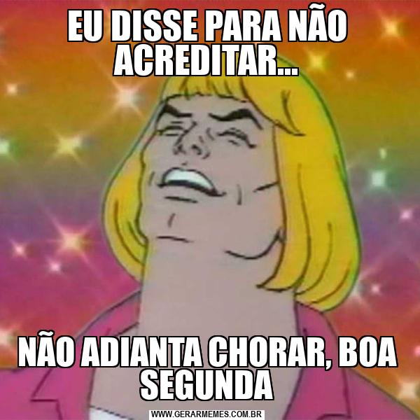 EU DISSE PARA NÃO ACREDITAR... NÃO ADIANTA CHORAR, BOA SEGUNDA