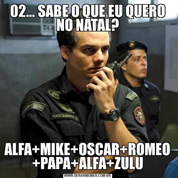 02... SABE O QUE EU QUERO NO NATAL? ALFA+MIKE+OSCAR+ROMEO +PAPA+ALFA+ZULU