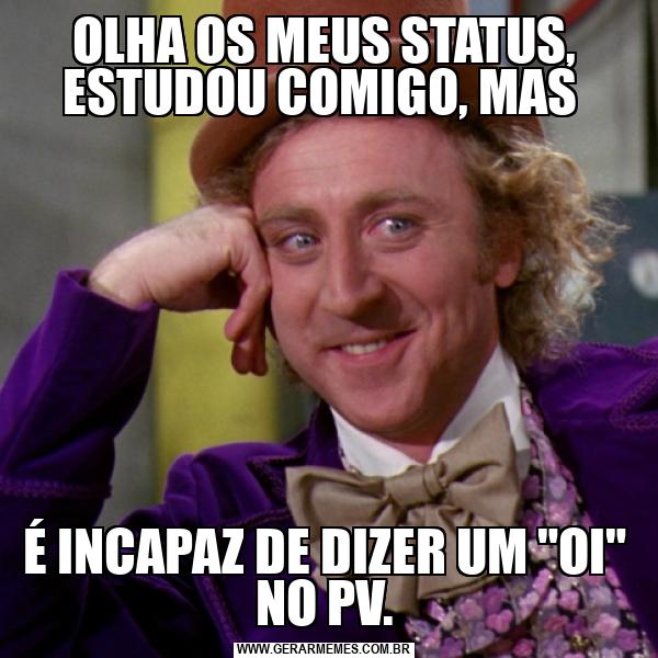 OLHA OS MEUS STATUS, ESTUDOU COMIGO, MAS É INCAPAZ DE DIZER UM "OI" NO PV.
