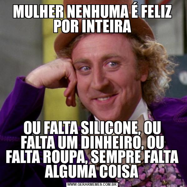MULHER NENHUMA É FELIZ POR INTEIRA OU FALTA SILICONE, OU FALTA UM DINHEIRO, OU FALTA ROUPA, SEMPRE FALTA ALGUMA COISA