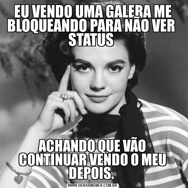 EU VENDO UMA GALERA ME BLOQUEANDO PARA NÃO VER STATUS ACHANDO QUE VÃO CONTINUAR VENDO O MEU DEPOIS.